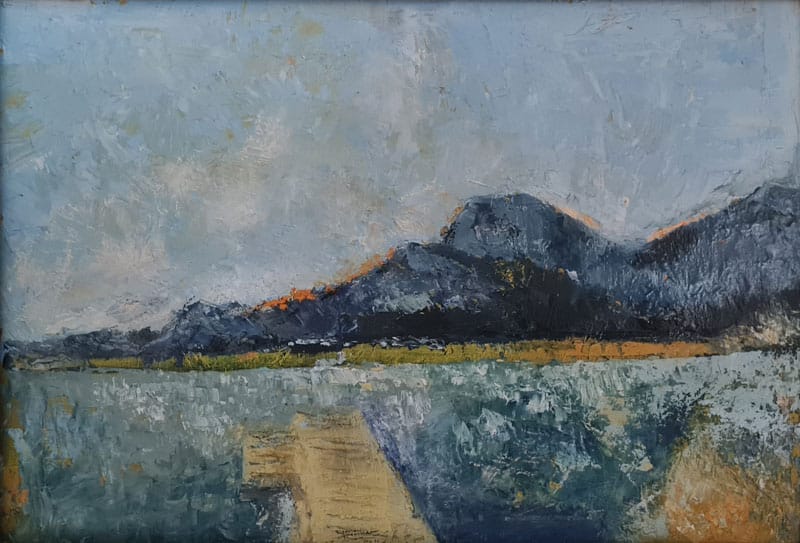 Seerosen treiben scheinbar schwerelos auf stillen Gewässern, weite Landschaften breiten sich ruhig am Horizont aus. Und doch offenbart die neue Ausstellung „Von Wasser getragen, vom Licht berührt“ in der Galerie Oberstdorf eine überraschende Spannung: Die Malereien sind nicht auf Leinwand entstanden, sondern auf Aluminium.