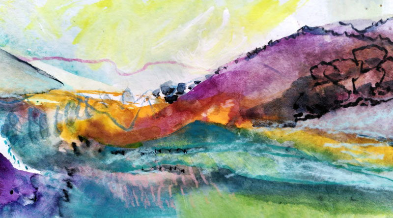 Schluchten und Menschen in freier, abstrakter und experimenteller Malerei.