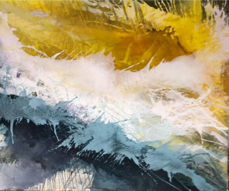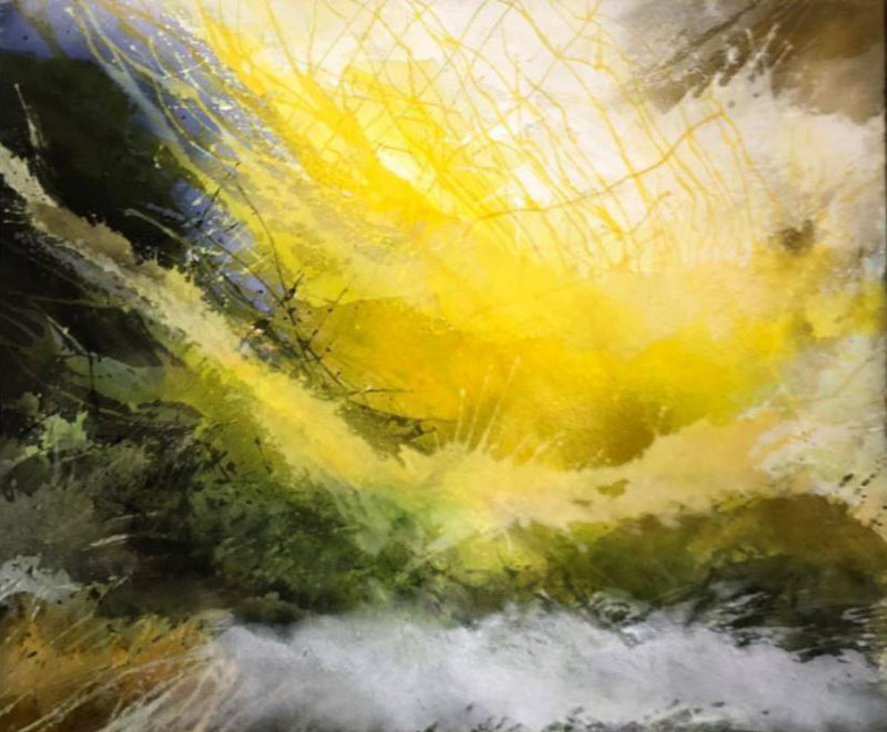 Diese setzt sie in ihren dynamischen Acrylbildern jedoch mit neuen Materialien und